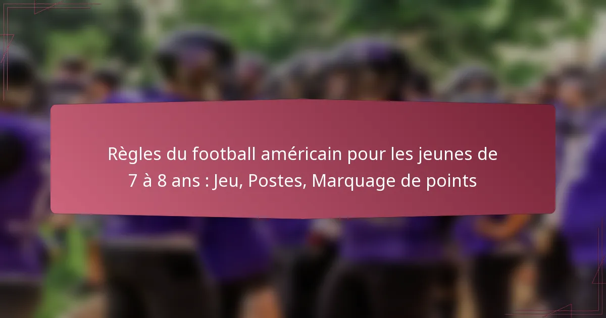 Les règles de jeu de base pour les 5-6 ans dans le football américain des jeunes se concentrent sur la sécurité, le développement des compétences et le plaisir. Le jeu est structuré pour initier les jeunes joueurs aux fondamentaux du football tout en minimisant les risques et en favorisant le travail d’équipe.