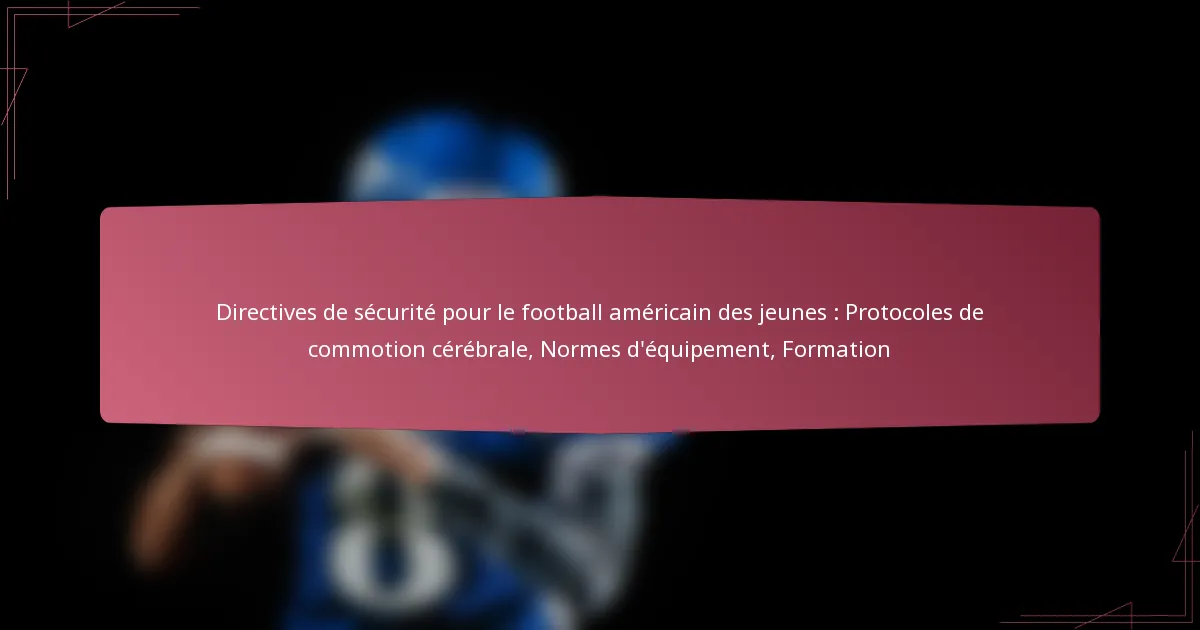 Assurer la sécurité des jeunes athlètes dans le football est primordial, avec des directives clés axées sur les protocoles de commotion cérébrale, les normes d’équipement et les programmes d’entraînement. Ces protocoles soulignent l’importance de reconnaître les symptômes et de mettre en œuvre des pratiques de retour au jeu sécuritaires, tandis que les normes d’équipement garantissent que tout le matériel de protection respecte les réglementations de sécurité. De plus, une formation complète pour les entraîneurs et les joueurs est essentielle pour promouvoir des techniques sûres et minimiser les risques de blessures tout au long de la saison.