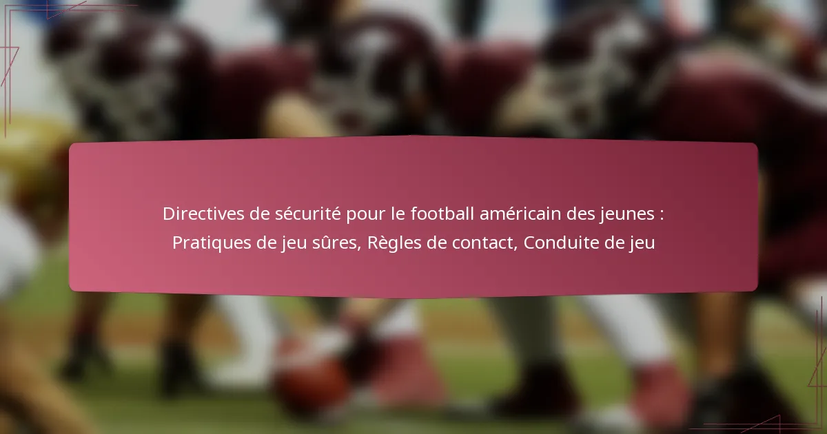 Quelles sont les principales directives de sécurité pour le football américain des jeunes ?